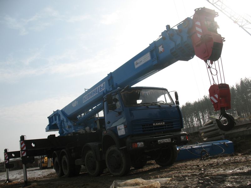 Кран грузоподъемностью 40 тонн смонтирован на четырехосном шасси автомобиля модели КамАЗ-6540. Кран универсален, он предназначен для работы как в городах, так и в условиях удаленности от населенных пунктов.